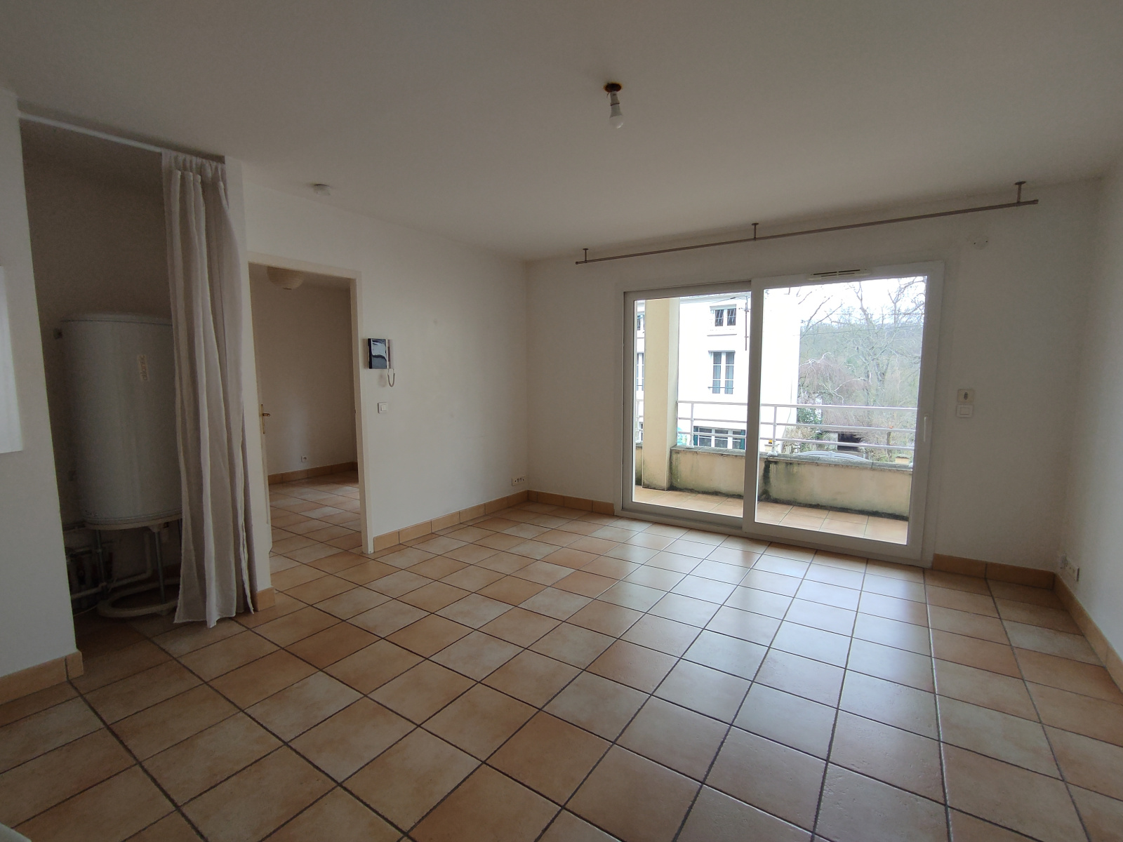BURES SUR YVETTE - 35 bis, rue Charles de Gaulle - Proche des commerces et de la gare RER B - Cet appartement de deux pièces d'une superficie de 36,07 m² est situé au premier étage avec ascenseur, il comprend : un séjour avec un accès sur une terrasse de 13,60 m², une cuisine ouverte aménagée et équipée d'une plaque de cuisson, d'une hotte et d'un réfrigérateur, une chambre avec un accès sur la terrasse, une salle d'eau attenante à la chambre et un water-closet séparé.