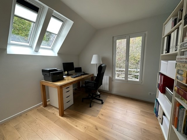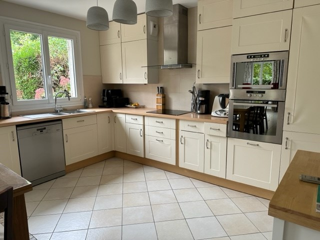 BURES SUR YVETTE : Quartier de la Hacquinière à 10 minutues à pied du groupe scolaire Léopold Gardey (maternelles et primaires), de la gare RER, cette maison édifiée sur un terrain de 330 m², située dans un domaine sécurisé d'une superficie Carrez de 117.83 m² (138 m² utiles), entiièrement rénovée comprend : Une entrée, un cellier/buanderie, un water-closets, un garage. Au rez-de-chaussée : un espace de vie de 42 m² avec un poêle à granulés et donnant de plain-pied sur la terrasse et le jardin, cuisine aménagée et équipée. Au 1er 1/2 niveau : deux chambres, une salle d'eau, un water-closets. Au 2ème 1/2 niveau : deux chambres dont une avec mezzanine, une salle de bains.