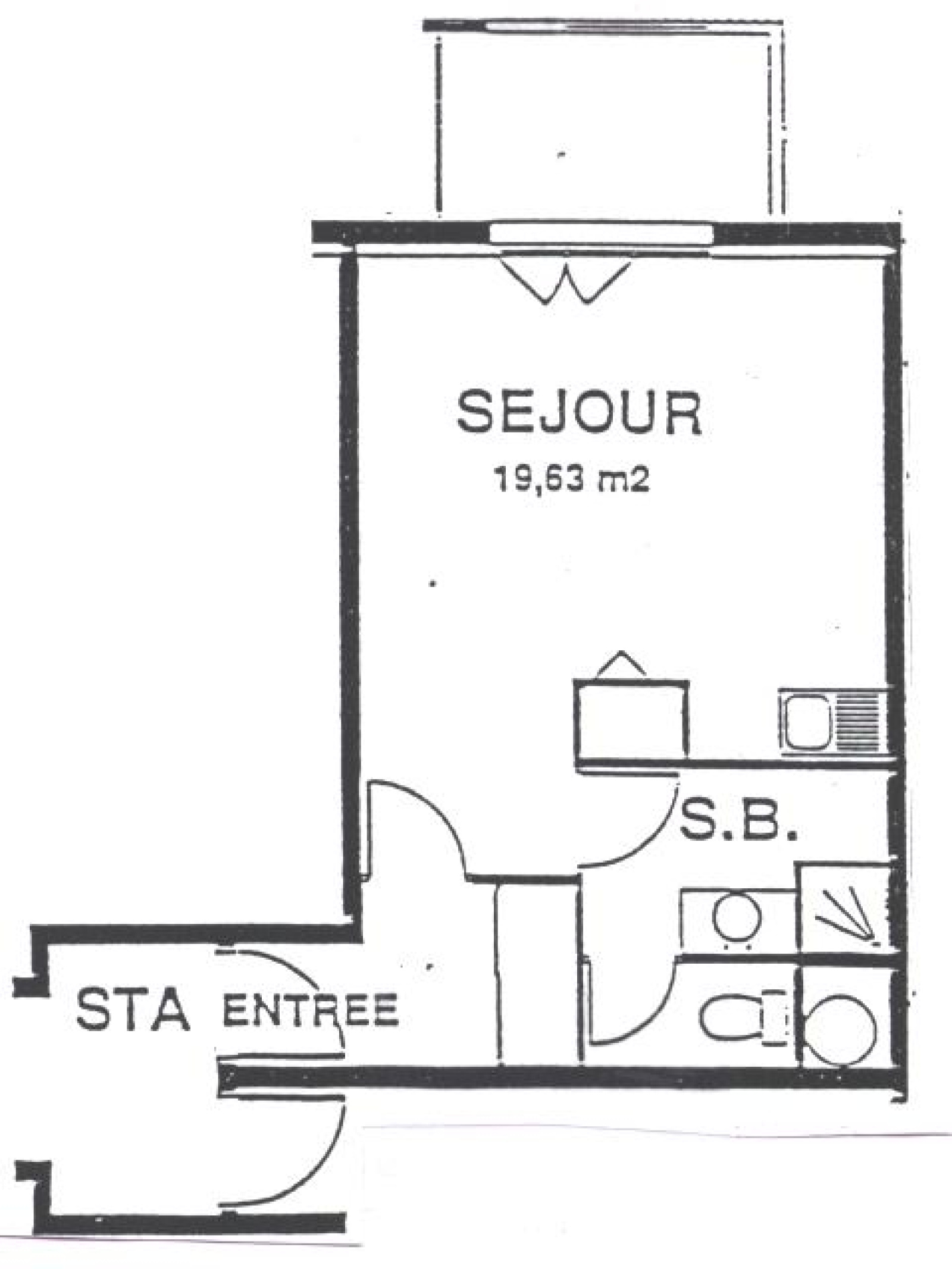 GIF SUR YVETTE : CHEVRY II - dans le centre ville, cet appartement de type studio d'une superficie carrez de 31,92 m² avec un balcon comprend : une entrée avec un rangement, un séjour de 20,46 m² donnant sur le balcon, une cuisine américaine, une salle d'eau, un water-closet.
